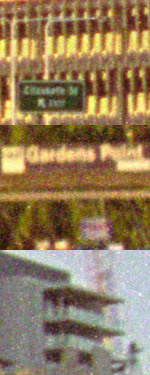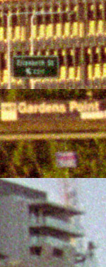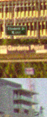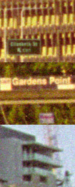 In the 100% crops shown below, the top image is from the centre of the frame, the centre image is from the right hand edge of the frame, and the bottom crop is from the upper-right corner. The samples below are actually approximately 0.5mm x 0.7mm on the original negative. No sharpening, ICE or grain management has been used for these scans, which were conducted at 5400 dpi, no multipass, 8 bit. |