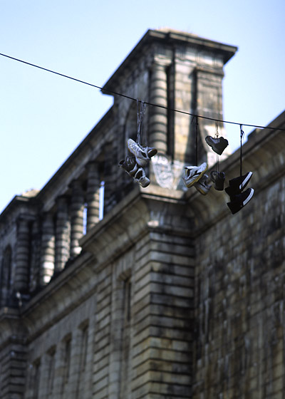 interesting use for old shoes. Manhattan Bridge Overpass, Dumbo End |